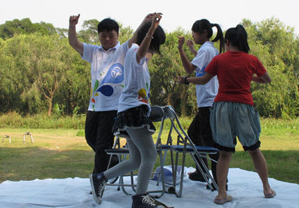 西雙版納企業員工會議會展戶外拓展訓練團建公司之拓展培訓項目:《搶凳子》