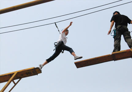 西雙版納企業員工會議會展戶外拓展訓練公司團建之拓展培訓項目:《高空斷橋》