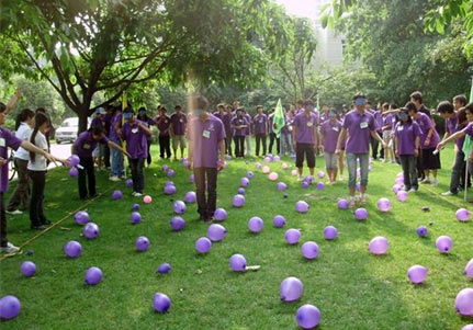 西雙版納企業員工會議會展戶外拓展訓練團建公司之拓展培訓項目:破冰游戲《穿越地雷陣》