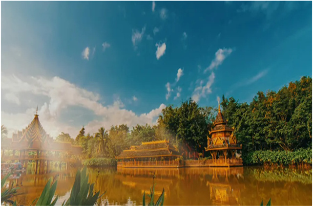 景洪的美需要細細品味如果你在景洪駐足一定不要錯過這座古老的公園——曼聽公園它曾是西雙版納傣王的御花園在這里,奇花異木爭奇斗艷山丘河流相映成趣泛舟河上,還能聽到鳥們的和音難怪傣族人習慣把曼聽公園叫做“春歡”