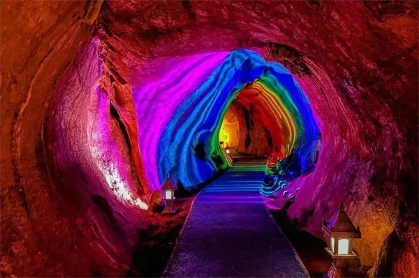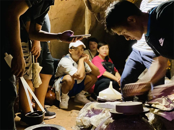 第一站是走進寶角牛洞,寶角牛洞全年恒溫21度,負氧離子峰值每立方米高達32萬個,空氣濕潤清爽,涼快怡人,團隊成員們已進入這個在這個天然的大空調里,身心都感到寧靜舒適,進入到了最適應拓展的狀態。溶洞秘境里的千變萬化讓人應接不暇,過目難忘,而在快走到出口時迎來了一股米酒的香味,更是沁人心脾。